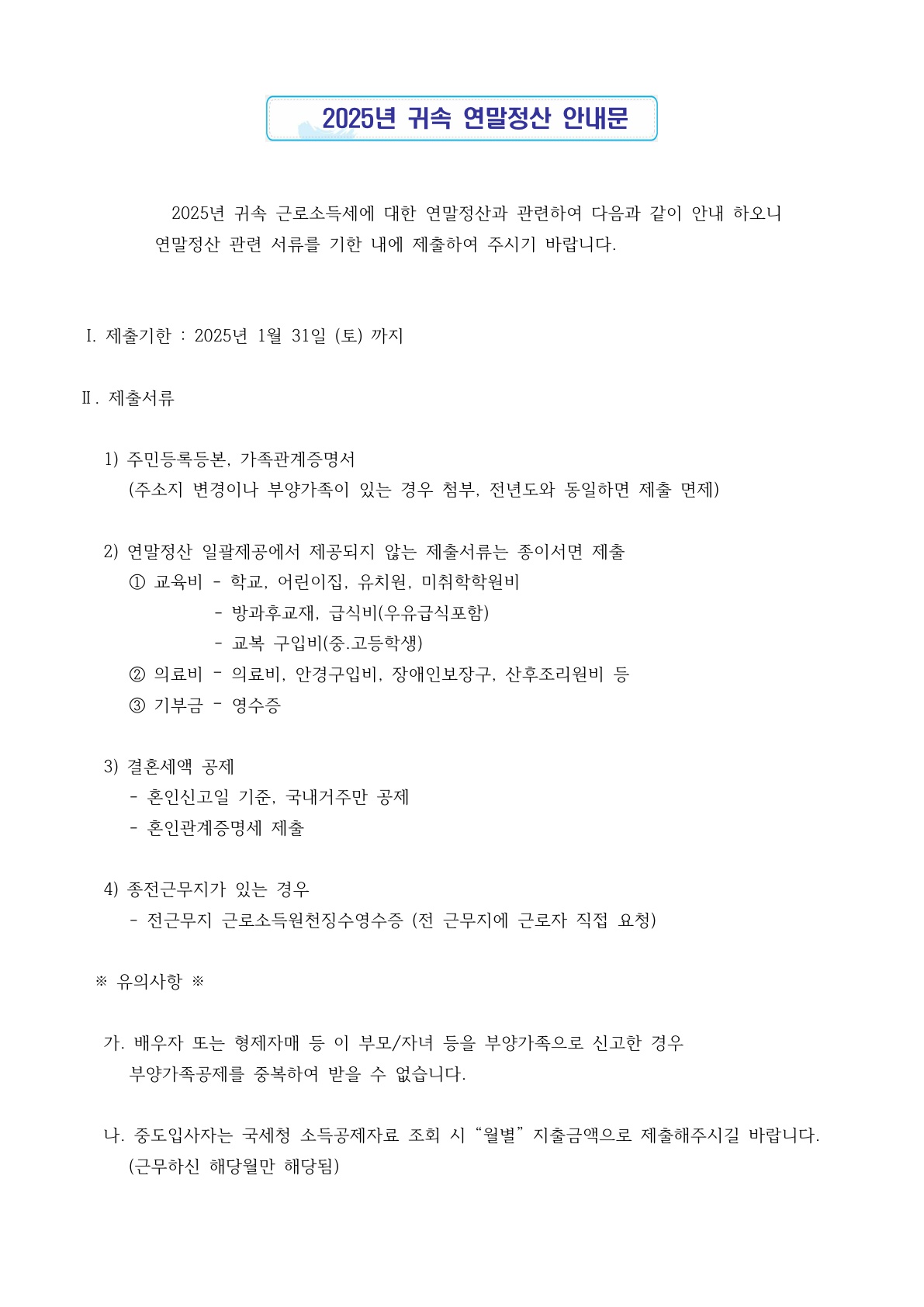 정보마당 <필독> 연말정산 관련 안내입니다. 작성자 Admin 작성일 2026-01-26 12:58 조회 17 좋아요 0 싫어요 0 인쇄 « 아태산업개발(주) 직원용한화콘도운영개시 목록보기 Powered by KBoard