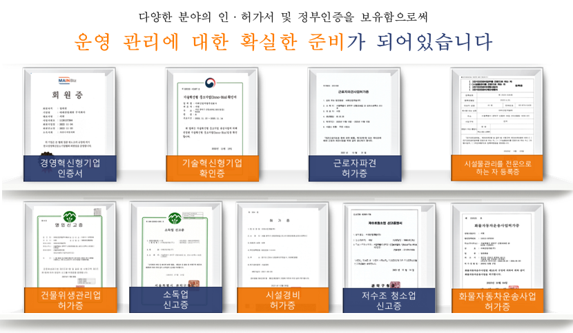 - 시설물관리를 전문으로 하는 자 등록(산업통상자원부 제2022-539호)